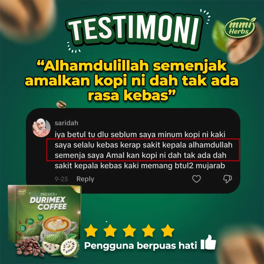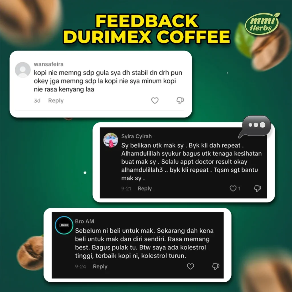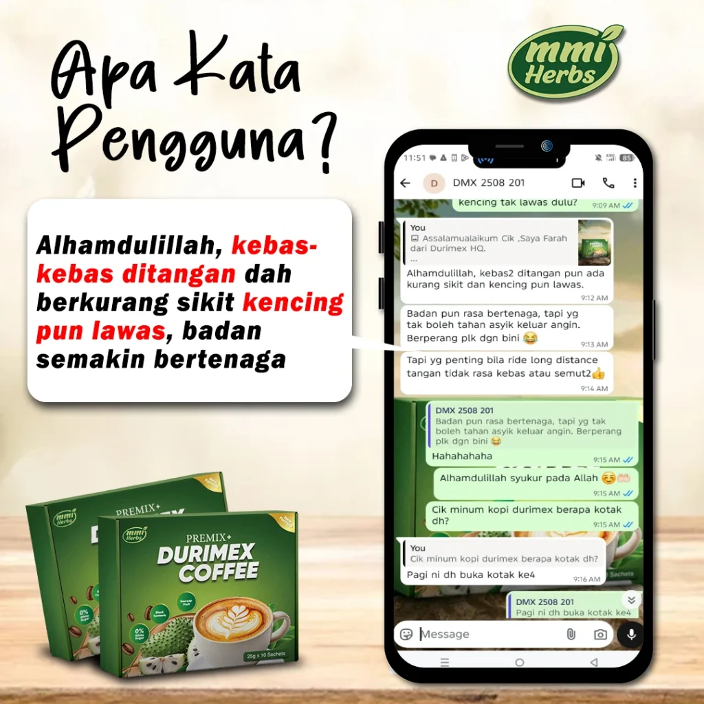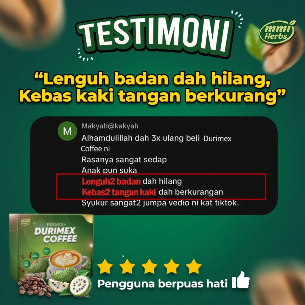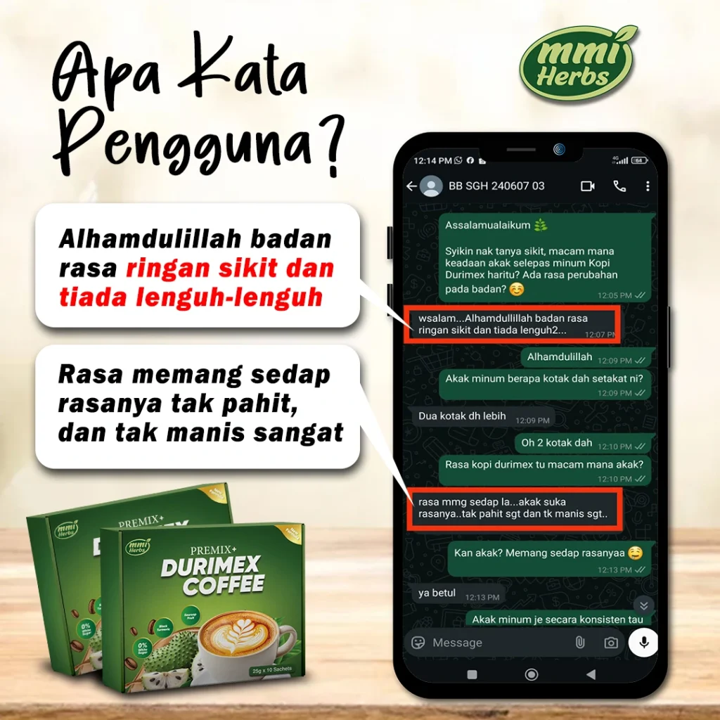Ramai yang merasai perubahan positif selepas penggunaan berterusan! Jika anda masih ragu-ragu, pulangan wang tersedia, tetapi kami percaya anda akan lebih menghargai manfaat Durimex Coffee setelah mencuba sendiri.